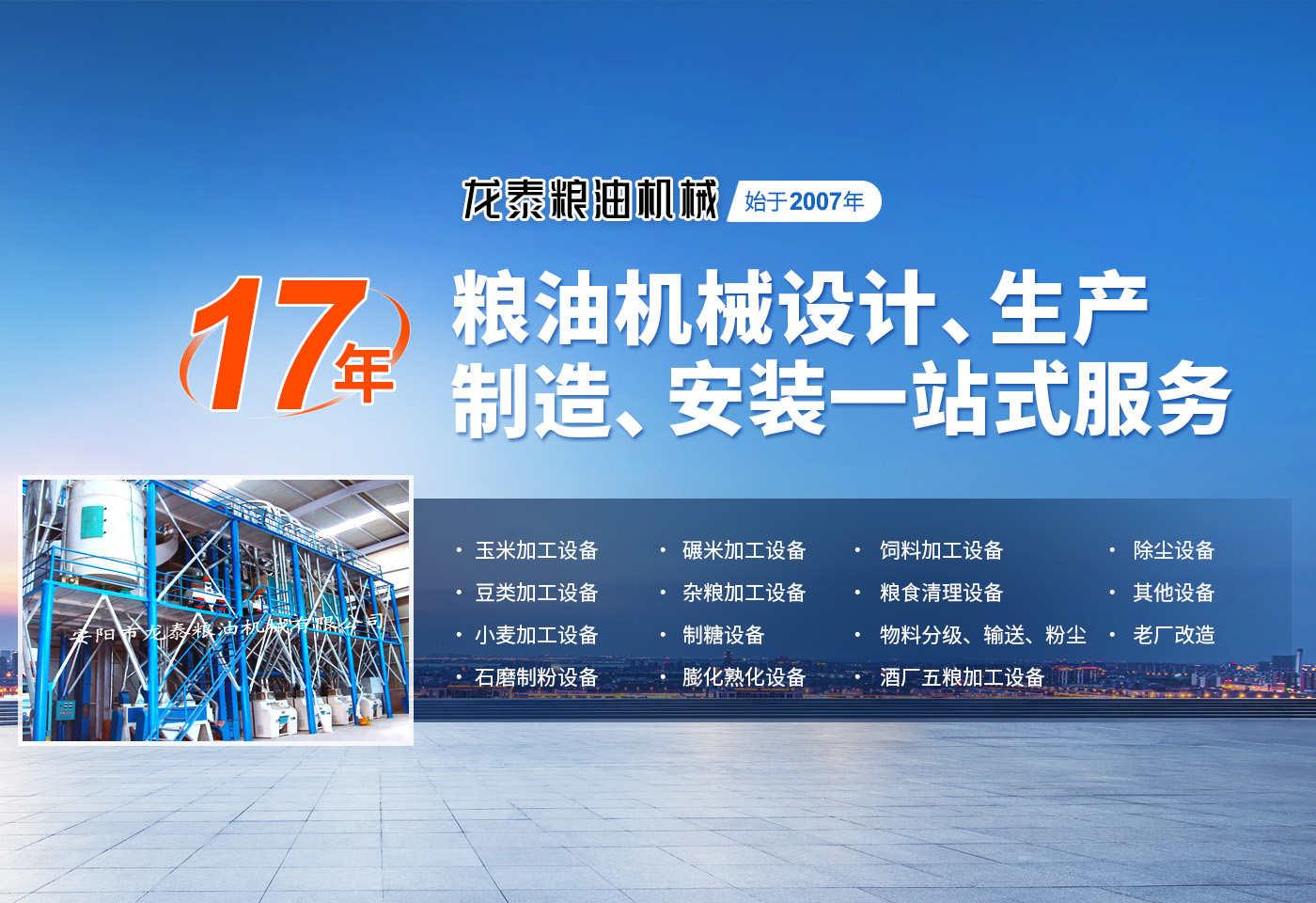 安陽市龍泰糧油機械有限公司是一個集糧油機械設計、生產制作、安裝于一體的設備制造商。公司坐落于農業生產基地河南省安陽市。多年來,公司與科研機構建立了廣泛的技術協作關系,精心致力于糧食加工設備的技術創新與應用,產品涵蓋整套碾米機械、小麥加工設備、玉米加工設備、雜糧加工設備,飼料加工及油脂設備等多個領域??沙薪尤椎慕昏€匙工程,提供從資金預算,整體規劃,土建設計,設備制造、安裝、培訓,售后保障等一站式服務?! ∥夜緭碛歇毩⒆灾鬟M出口權及產品原產地注冊證書。產品除國內市場外,多次出口到,亞洲,非洲,南美洲、東歐等多個國家及地區。為國內外多家企業提供了工藝先進,技術過硬,節能的糧油設備,深得國內外客戶的一致好評。 公司以“質量就是生命”為宗旨,根據客戶不同需求,采用合理的技術方案,為客戶量身打造投資建廠方略,爭取實現高收益。公司生產過程嚴格按照合同和圖紙設計要求,生產符合設計標準、檢測標準、質量優良的產品供給客戶,并提供安裝、調試、培訓,保修期免費維修,終身免費咨詢等服務,確保設備在長期使用中穩定運行?! ↓執?愿與您一起攜手共創輝煌!